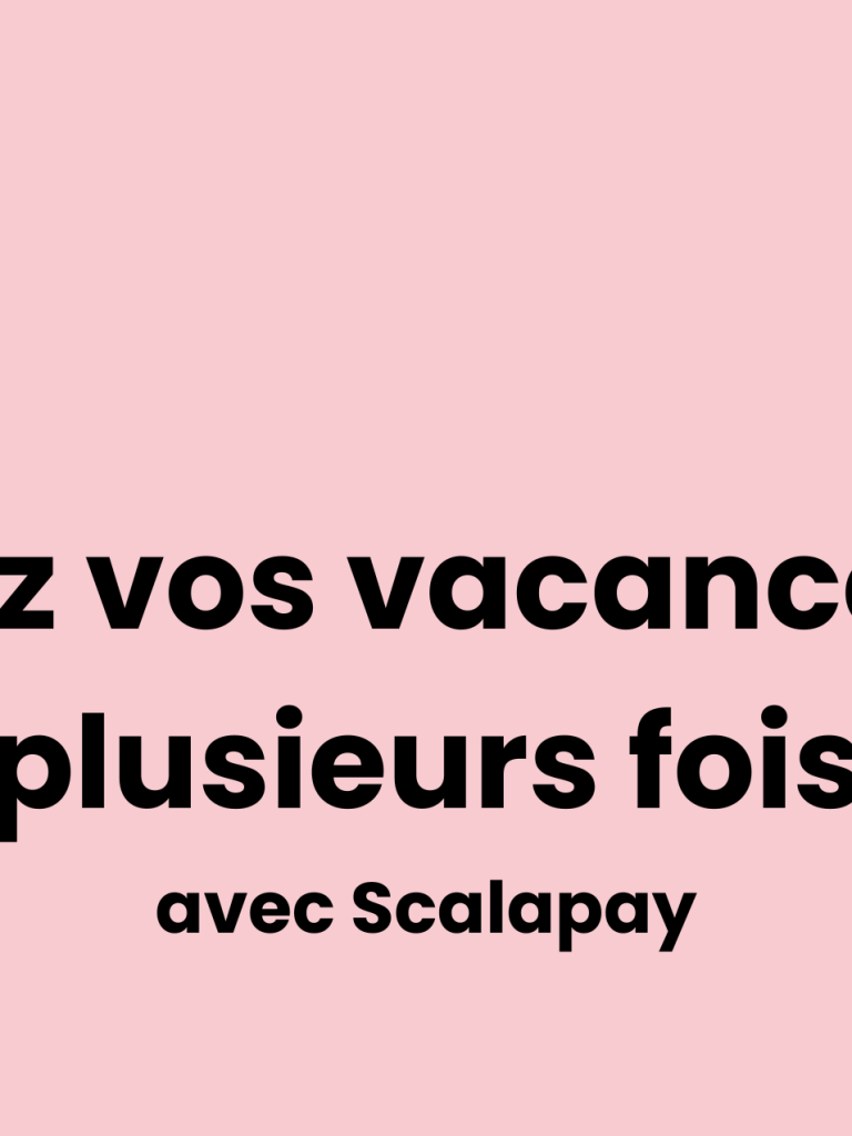 - Dans les 7 jours précédant votre arrivée, vous demandez le lien pour effectuer le paiement du solde en plusieurs fois avec Scalapay